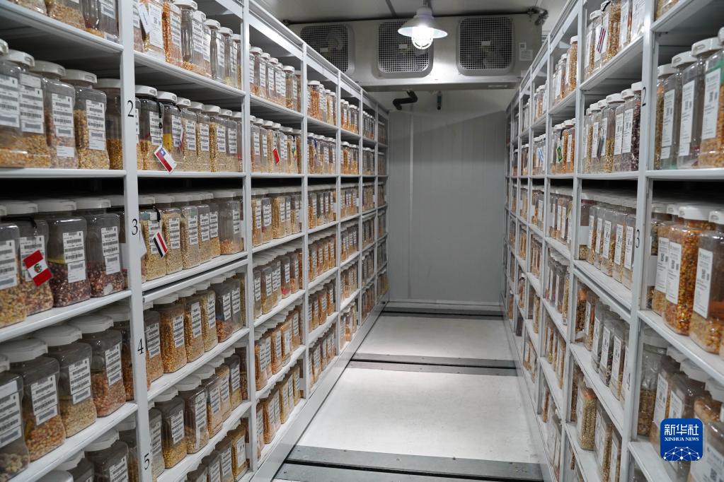 這是11月7日在墨西哥特斯科科郊外國際玉米小麥改良中心拍攝的“種質銀行”內部。在國際玉米小麥改良中心內有一座“種質銀行”,在兩扇厚重的隔溫門后,冷庫里儲存著超過15萬種小麥種質、超過2.8萬種玉米種質資源。