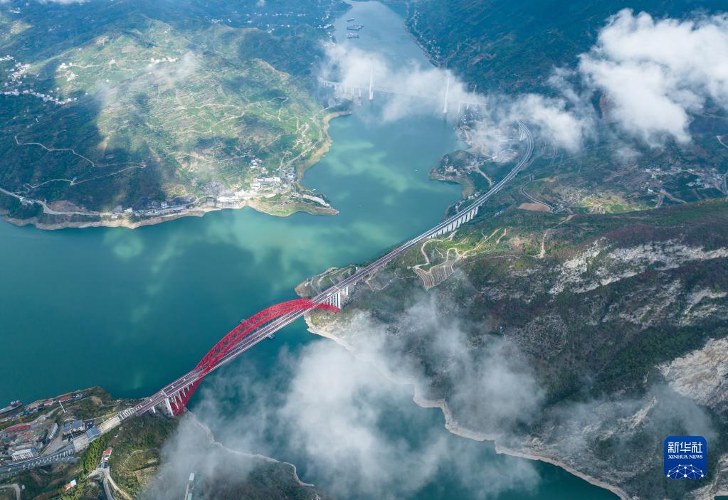 初冬時節(jié),湖北省宜昌市秭歸縣西陵峽上空云霧繚繞,船行江上,宛如一幅水墨畫卷。