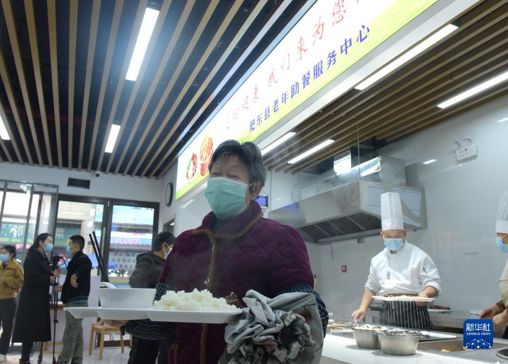 11月22日,安徽省合肥市肥東縣老年助餐服務中心內,老人們準備就餐。