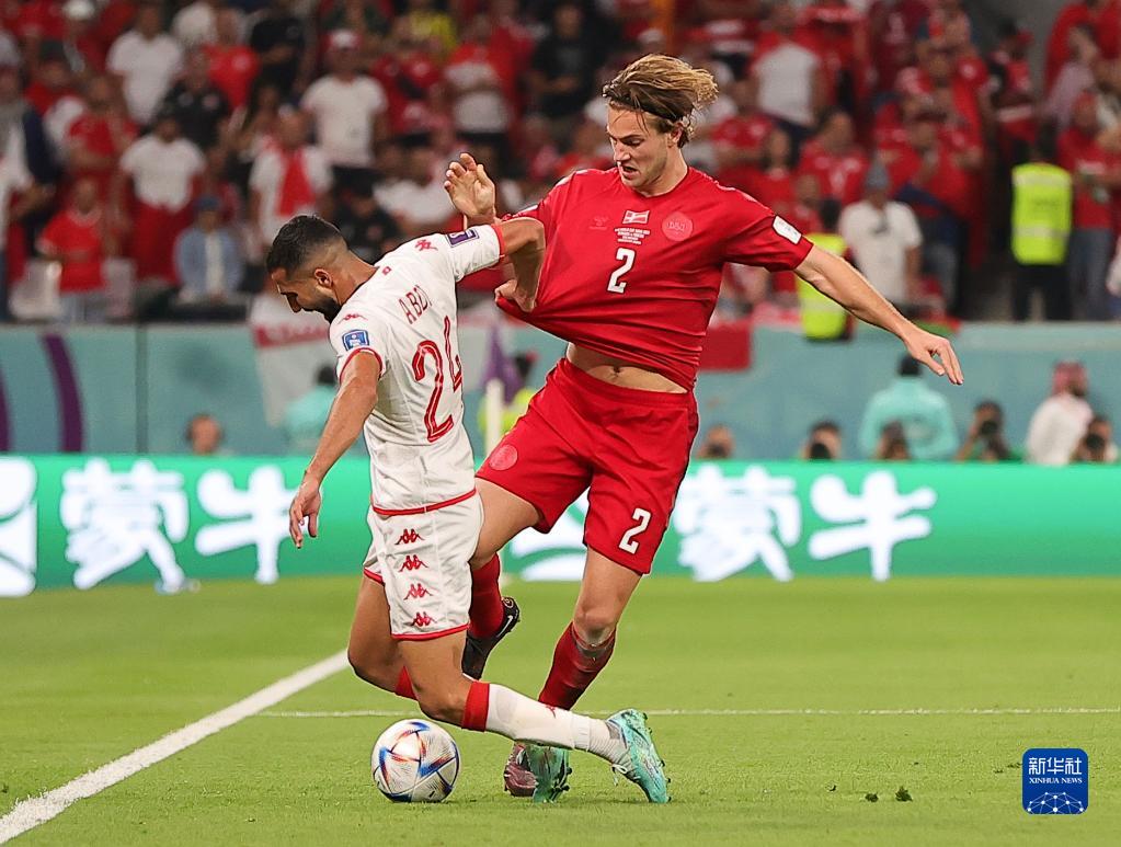 當日,在卡塔爾賴揚教育城球場進行的2022卡塔爾世界杯足球賽D組比賽中,丹麥隊以0比0戰(zhàn)平突尼斯隊。