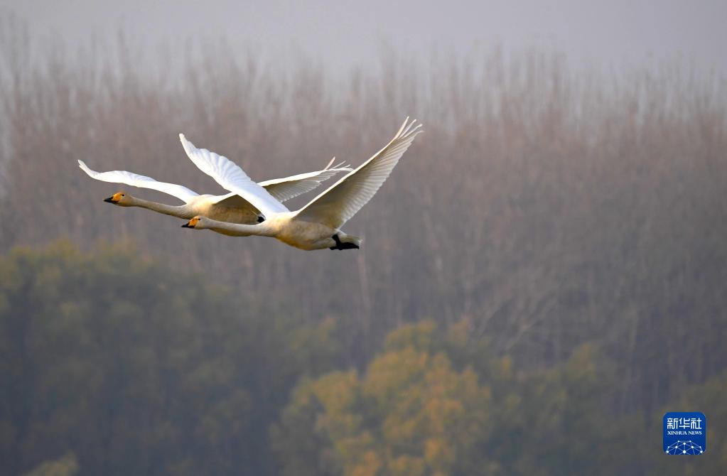 初冬時節,大批天鵝陸續南遷來到河南省三門峽市黃河濕地棲息越冬。近年來,當地大力推進黃河濕地生態建設,加強天鵝保護力度,來這里越冬的天鵝數量逐年增多。