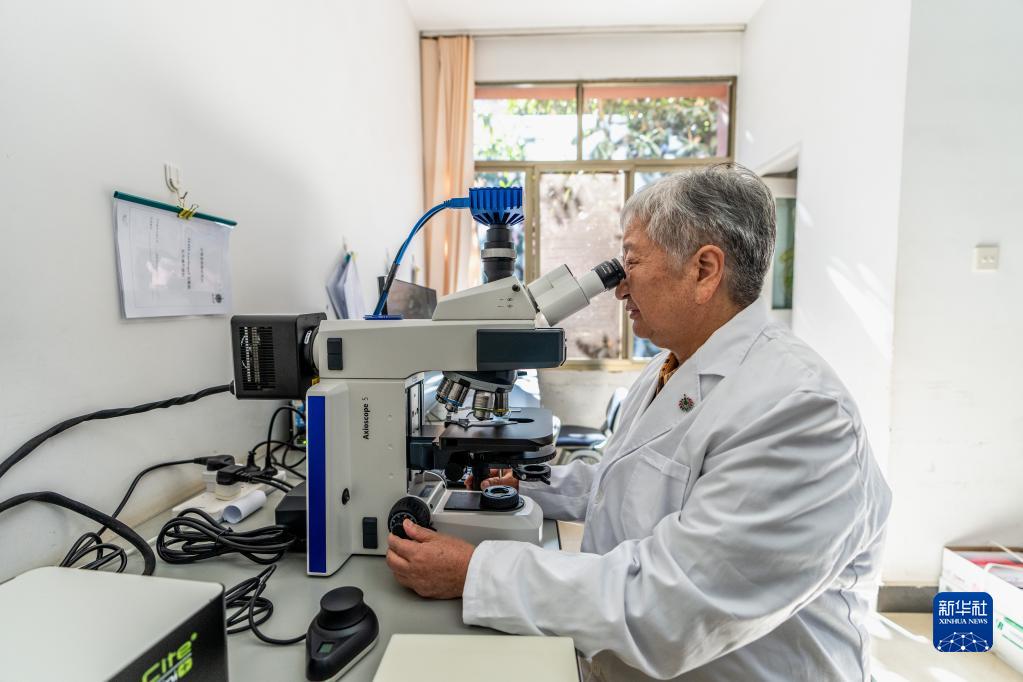 11月22日,朱兆云在云南省藥物研究所實驗室觀察藥物顯微組織特征。