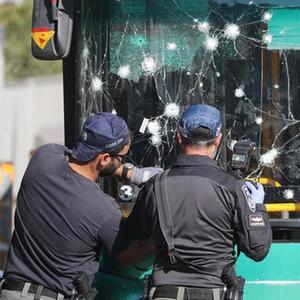 11月23日,以色列警察在耶路撒冷的一處爆炸現場調查。