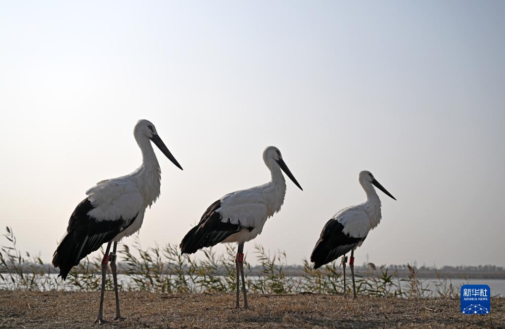 新華全媒+丨3只“鳥類大熊貓”東方白鸛在七里海濕地重返自然