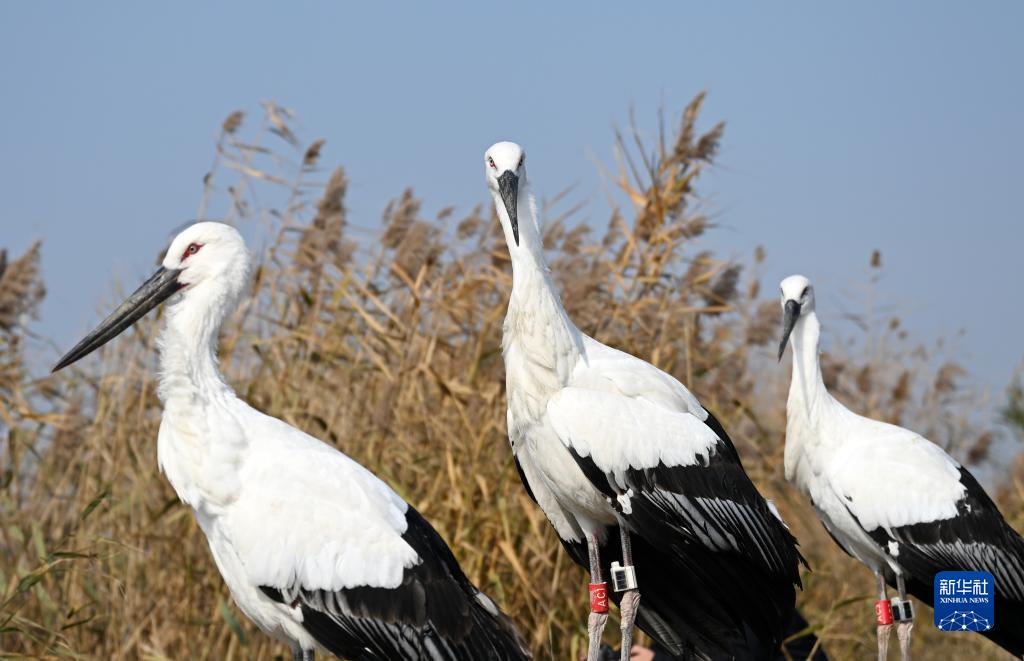東方白鸛是國家一級保護(hù)動物。3只東方白鸛在回歸自然的同時還佩戴了衛(wèi)星跟蹤器,工作人員將對它們進(jìn)行持續(xù)監(jiān)測,以便更好掌握其活動及健康情況。