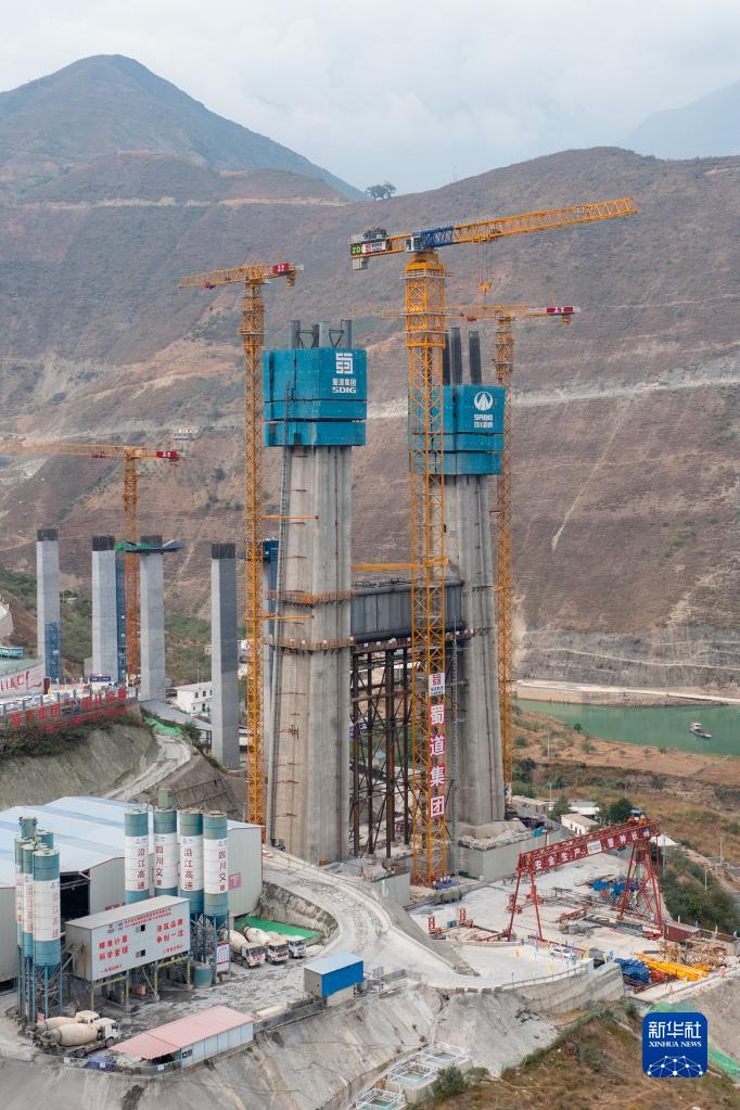 這是11月23日拍攝的卡哈洛金沙江大橋施工現場(無人機照片)。