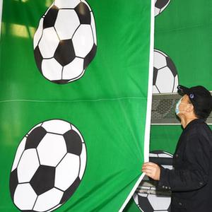 世界杯如火如荼,山東青島一家專門為世界杯提供旗幟的企業正加緊生產海外客商追加的訂單,主要是參賽國國旗、足球標識旗、串旗等,并會隨時根據賽況及出線球隊變化調整生產計劃。