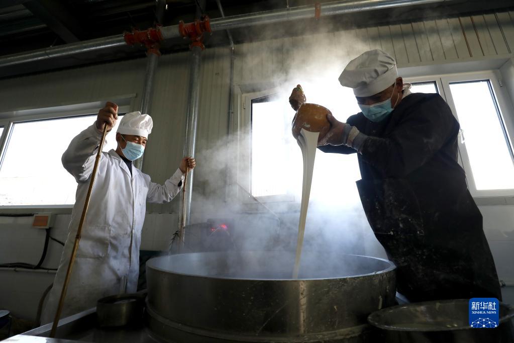 11月24日,在河北省井陘縣南王莊鄉割髭嶺村一家粉條生產基地,工人在制作傳統手工粉條。
