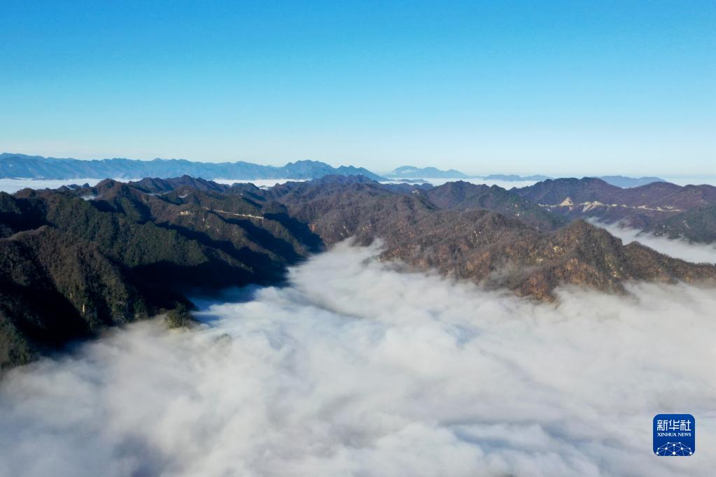 11月24日在湖北省襄陽市保康縣馬橋鎮梨花山拍攝的云海(無人機照片)。