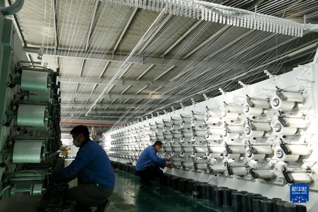 11月24日,青島市即墨區(qū)一家篷布生產(chǎn)企業(yè)的工人在拉絲車間忙碌。