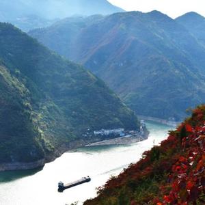 初冬時節(jié),長江巫峽兩岸,紅葉爛漫,景色壯麗。