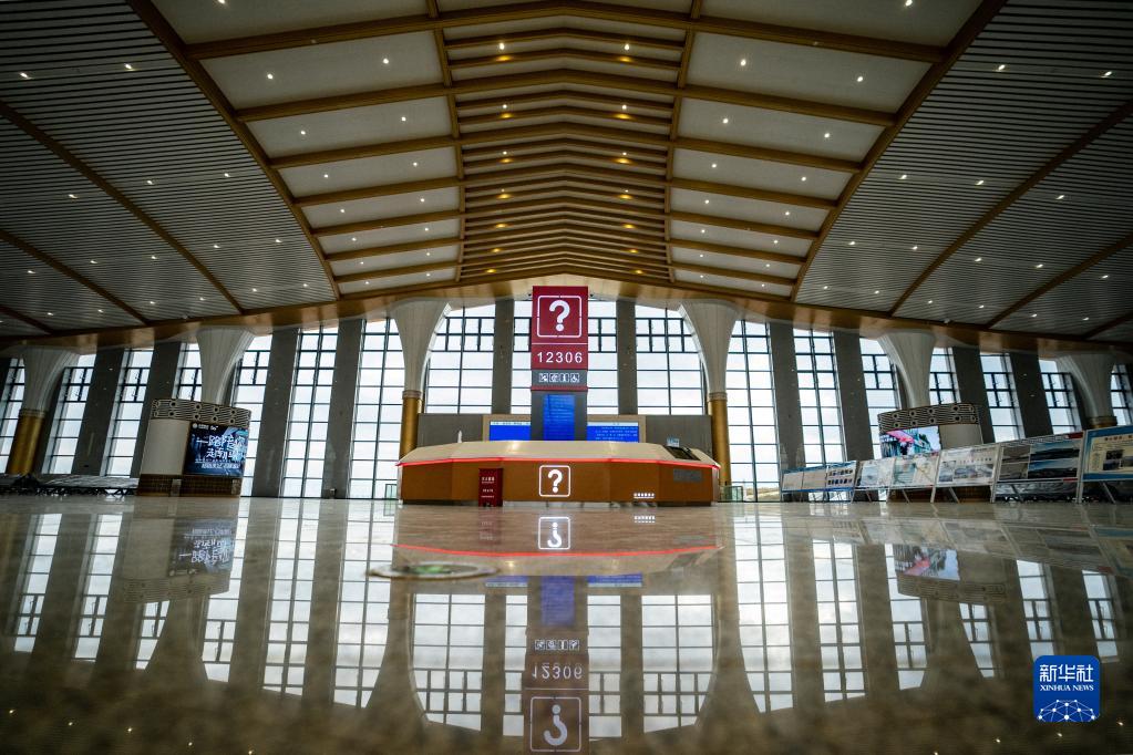 11月24日拍攝的建設中的彌蒙高鐵紅河站內景。