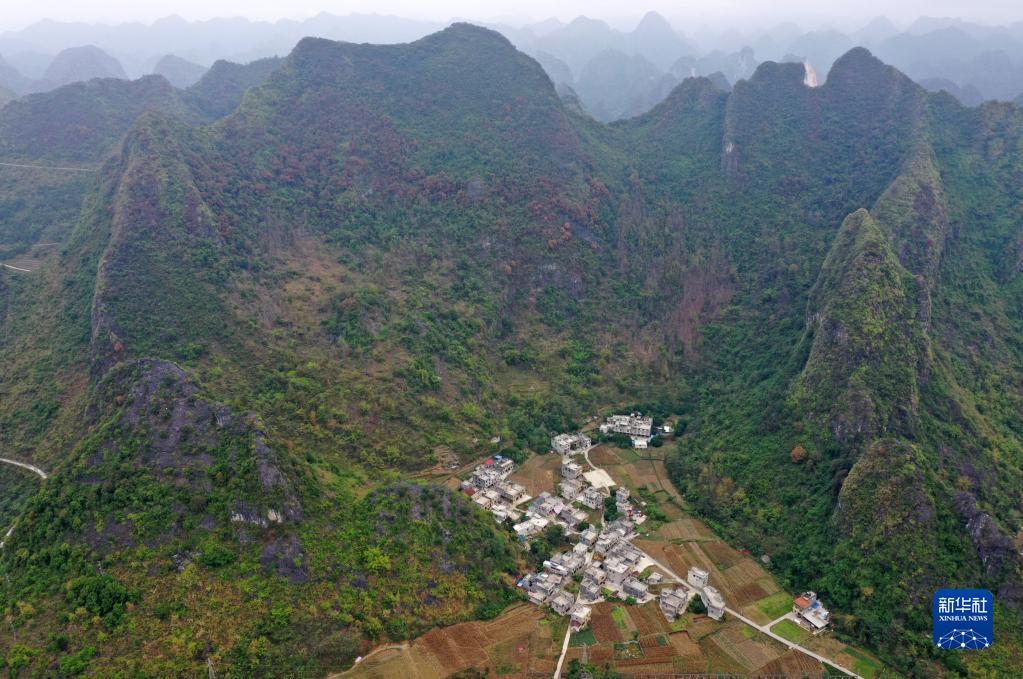 這是王金寶家所在的廣西河池市都安瑤族自治縣大興鎮九頓村那內屯(11月24日攝,無人機照片)。