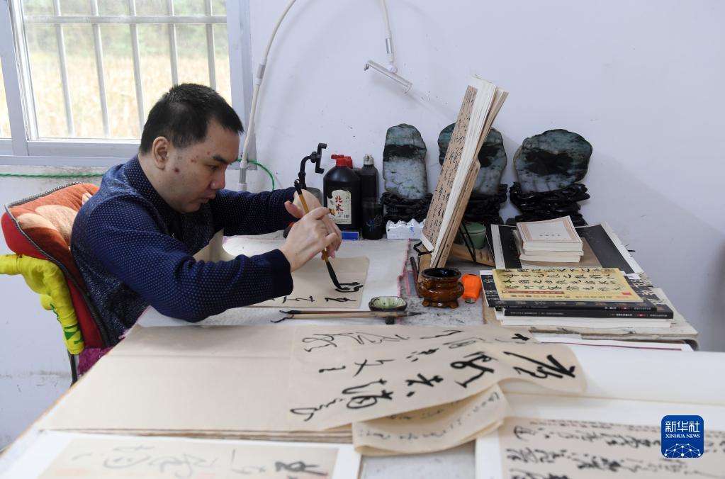 新華全媒+丨輪椅上的書法家夢
