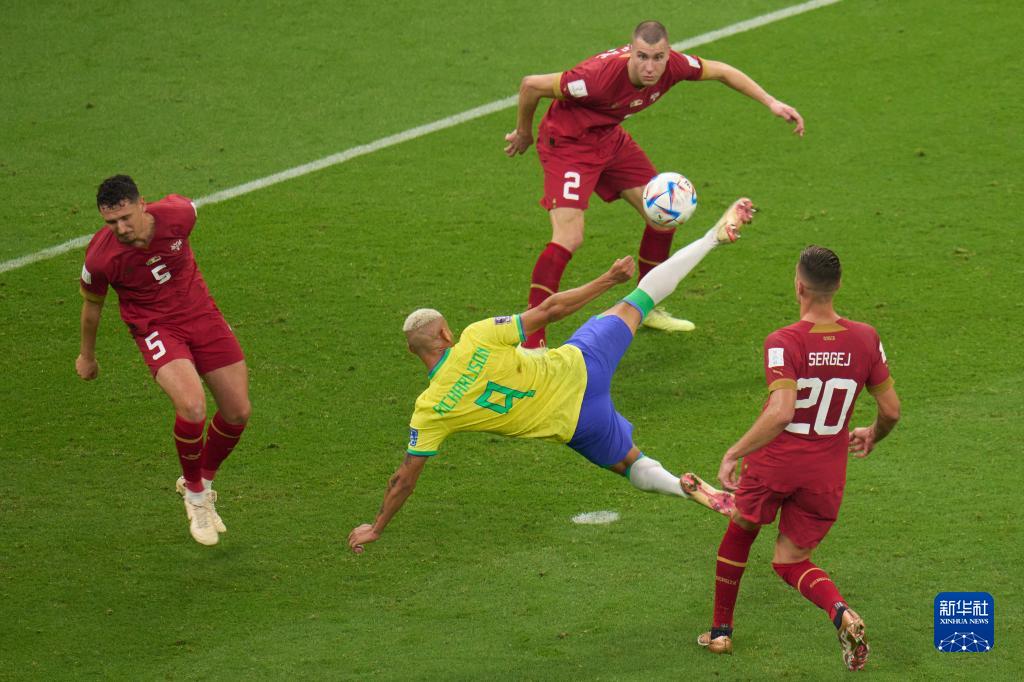 當(dāng)日,在卡塔爾盧賽爾球場進(jìn)行的2022卡塔爾世界杯足球賽G組比賽中,巴西隊以2比0戰(zhàn)勝塞爾維亞隊。