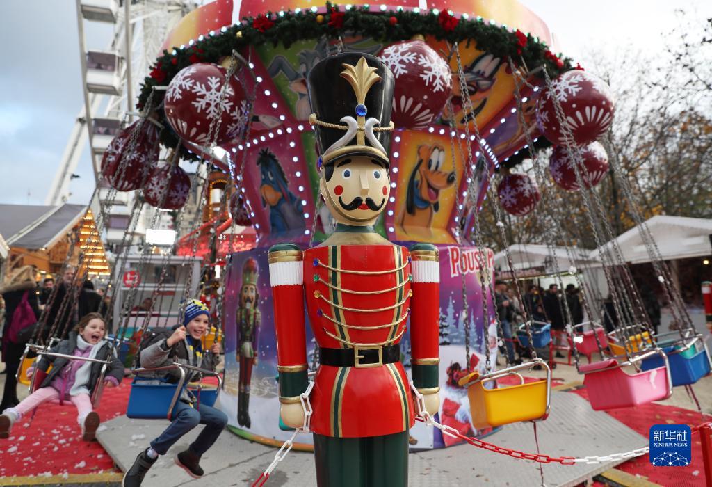11月24日,孩子們在法國巴黎杜伊勒里花園的圣誕市場嬉戲。