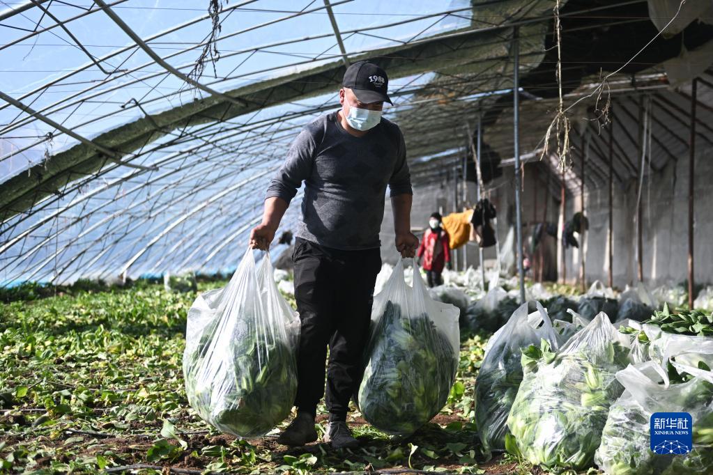 冬日時節,青海省西寧市大通回族土族自治縣的蔬果大棚內,菜農忙著進行冬種、冬收等工作,保障蔬果市場供應。近年來,大通縣大力發展高效設施農業,鼓勵農民成立專業合作社,擴大高原綠色蔬菜種植,助力鄉村振興。