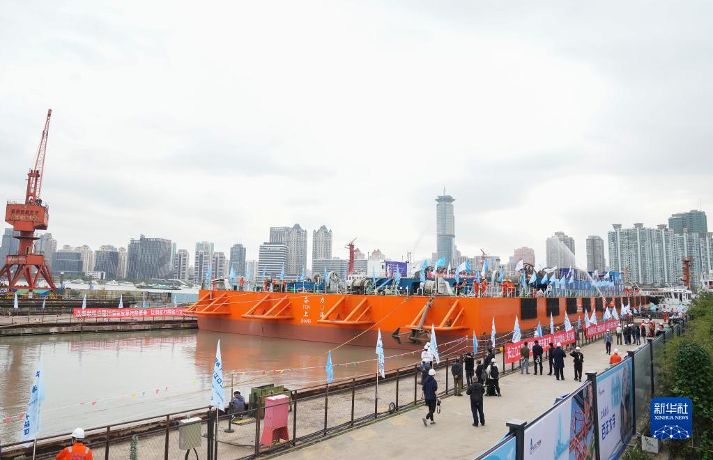 11月25日,“奮力”輪裝載著長江口二號古船進入上海船廠舊址1號船塢。