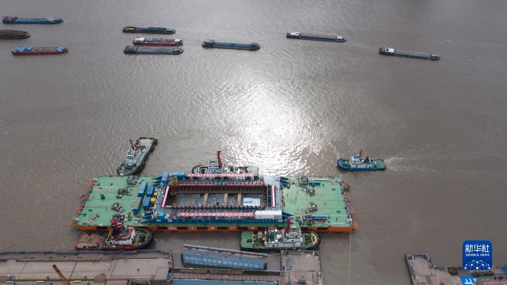 11月25日,“奮力”輪裝載著長(zhǎng)江口二號(hào)古船停靠上海船廠舊址1號(hào)船塢碼頭,準(zhǔn)備入塢。
