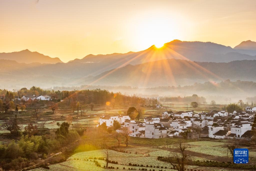 初冬時節,安徽省黃山市黟縣的徽派建筑與自然環境融為一體,盡顯詩畫般的美麗圖景。