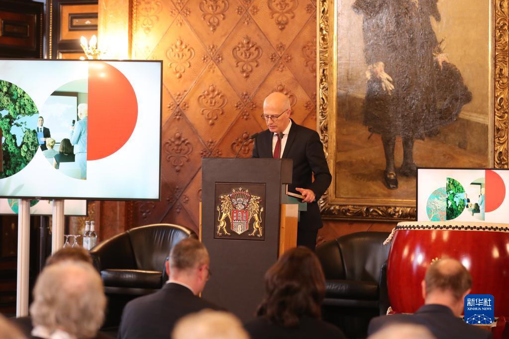 11月23日,在德國漢堡“中國時代”活動研討會上,漢堡市市長彼得·辰切爾發言。
