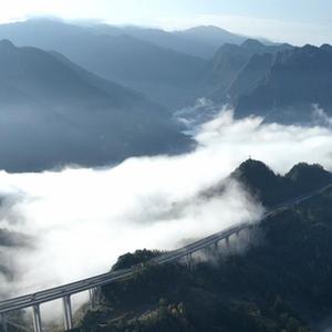 當(dāng)日,湖北宣(恩)鶴(峰)高速公路在云霧中若隱若現(xiàn),美如畫卷。