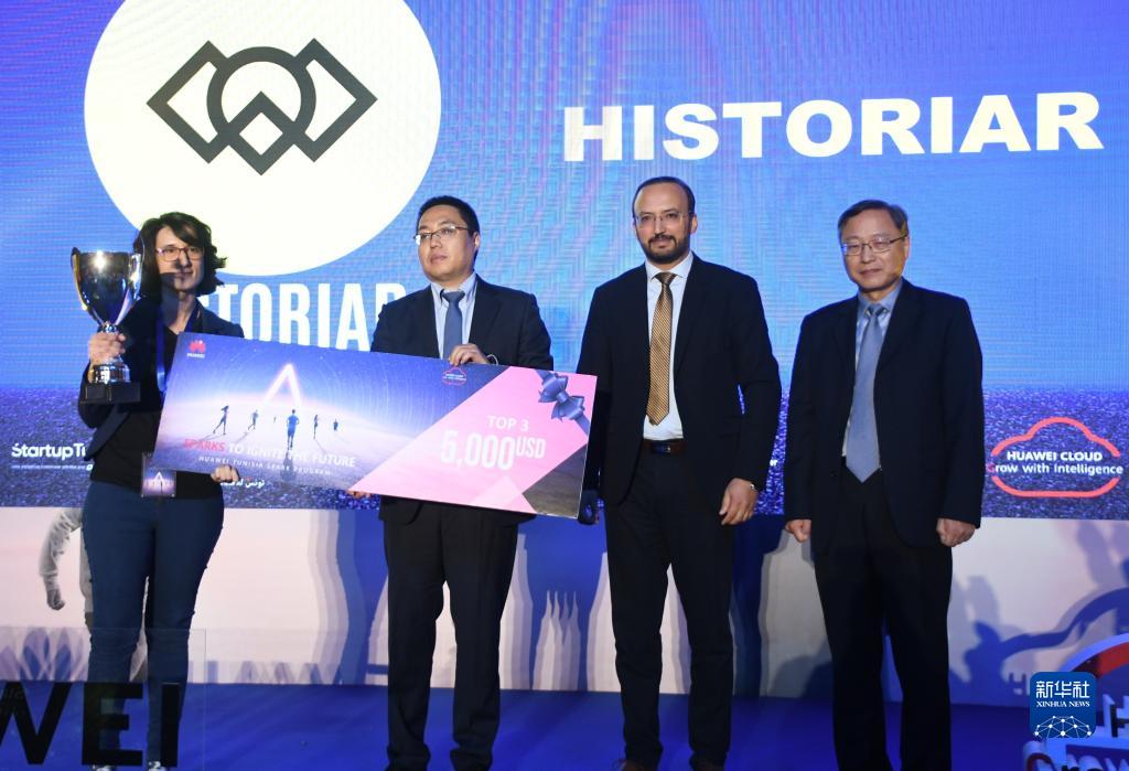 中國華為公司與突尼斯政府相關機構25日在突尼斯舉辦扶持當地科技初創企業的“星火計劃”決賽并進行頒獎。