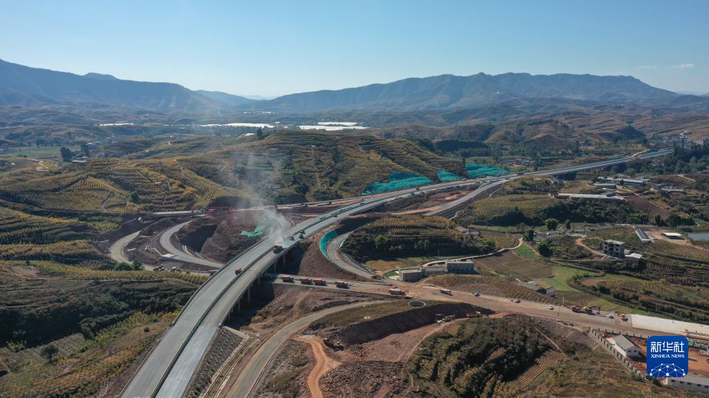 這是11月25日拍攝的四川沿江高速會東南—會理南閣互通先期通車段施工現場(無人機照片)。