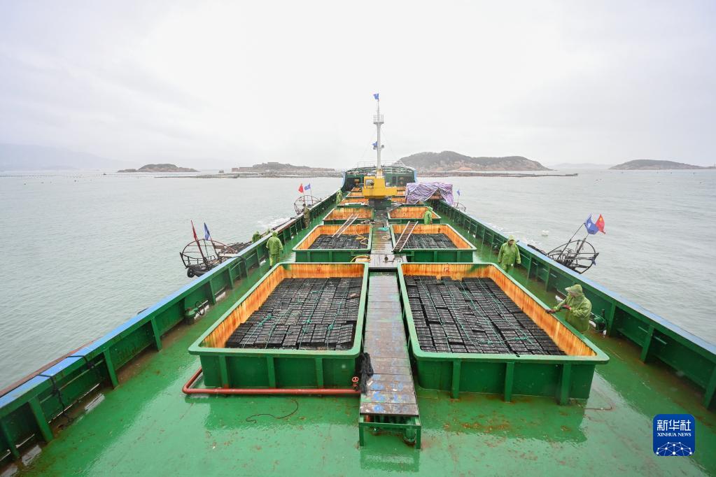 這是11月25日在福州連江縣苔菉鎮(zhèn)后灣海域拍攝的鮑魚運(yùn)輸船。