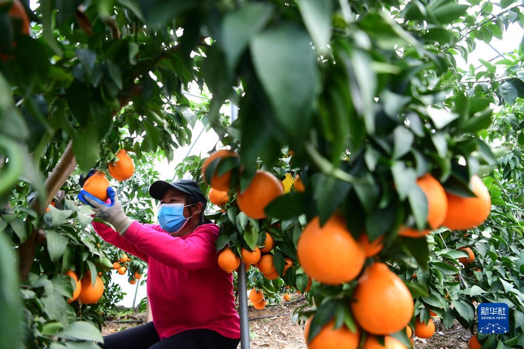 11月26日,村民在肥西縣銘傳鄉王井社區特色蔬果產業園內采摘“紅美人”柑橘。