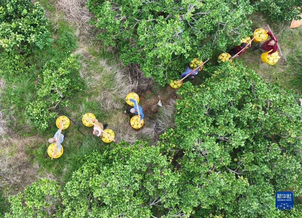 近日,湖南省永州市道縣的沙田柚迎來豐收。當地采取“合作社+基地+農戶”模式,引導群眾大力發展特色水果產業,帶動農民增收。