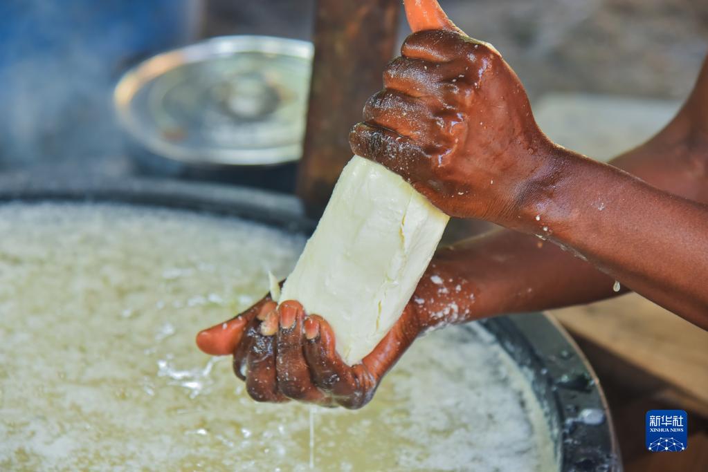 木薯是喀麥隆百姓重要的傳統糧食作物。成熟的木薯塊根經過清洗、削皮、切碎,再放入水中發酵,根據發酵時間的不同,木薯碎根可以制成不同的衍生品,比如木薯棒和木薯“古斯古斯”。