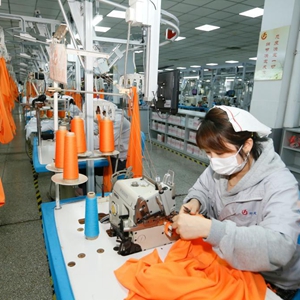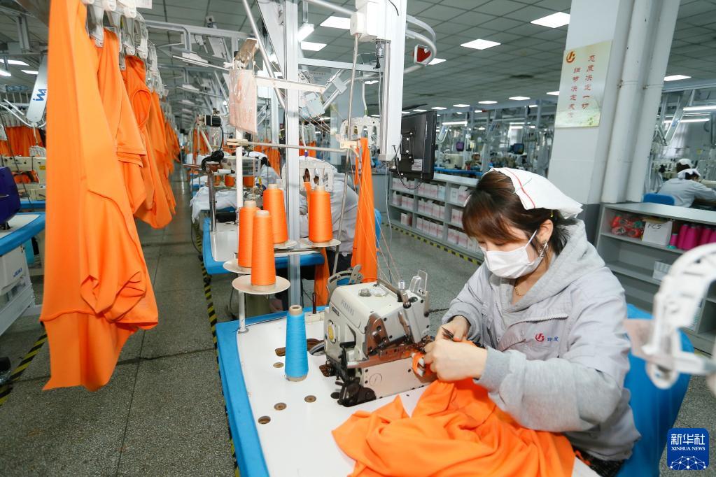 近日,山東省青島市即墨區紡織服裝企業外貿訂單充足,工人們加緊生產,供應市場。