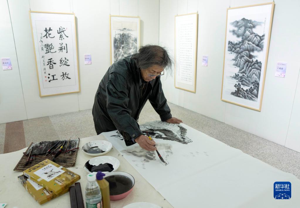 12月3日,在北京民族文化宮舉行的共享芬芳·共鑄美好——“仁美”書畫攝影展上,殘疾人書畫家劉德霖現(xiàn)場(chǎng)進(jìn)行筆會(huì)交流。