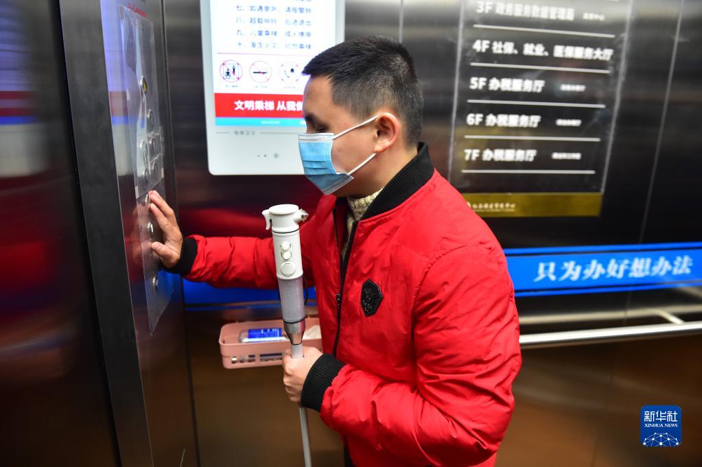 市民陳銳在江西省南昌市紅谷灘區市民中心使用無障礙電梯(12月2日攝)。新華社記者 彭昭之 攝