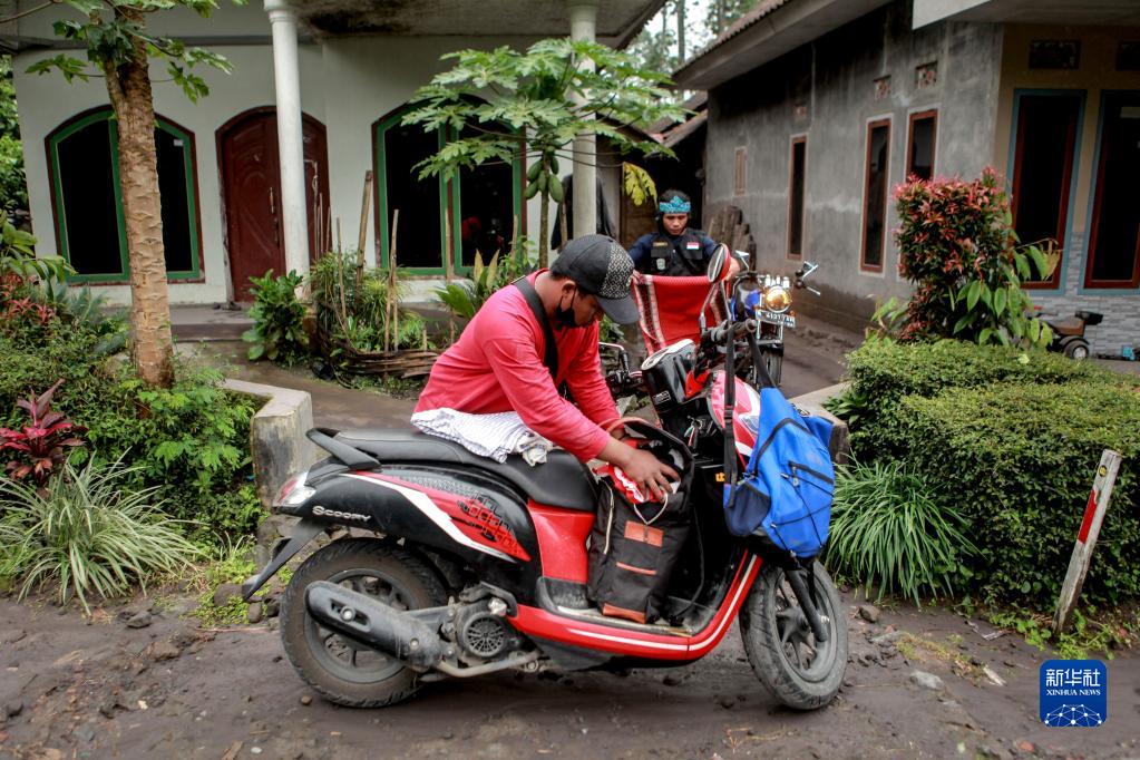 12月4日,在印度尼西亞東爪哇省盧馬姜的薩皮圖朗村,一名男子整理行李準備離開。
