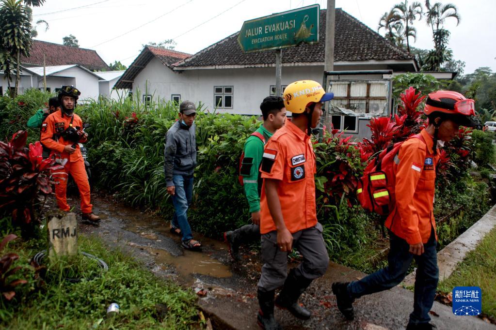 12月4日,在印度尼西亞東爪哇省盧馬姜的薩皮圖朗村,救援人員疏散村民。