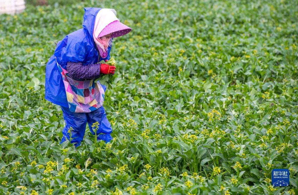 12月4日,在湖南省永州市道縣清塘鎮(zhèn)室家村,村民在蔬菜基地采摘蔬菜。