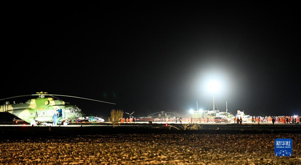 12月4日,神舟十四號載人飛船返回艙在東風著陸場成功著陸。這是著陸現場。新華社記者 連振 攝