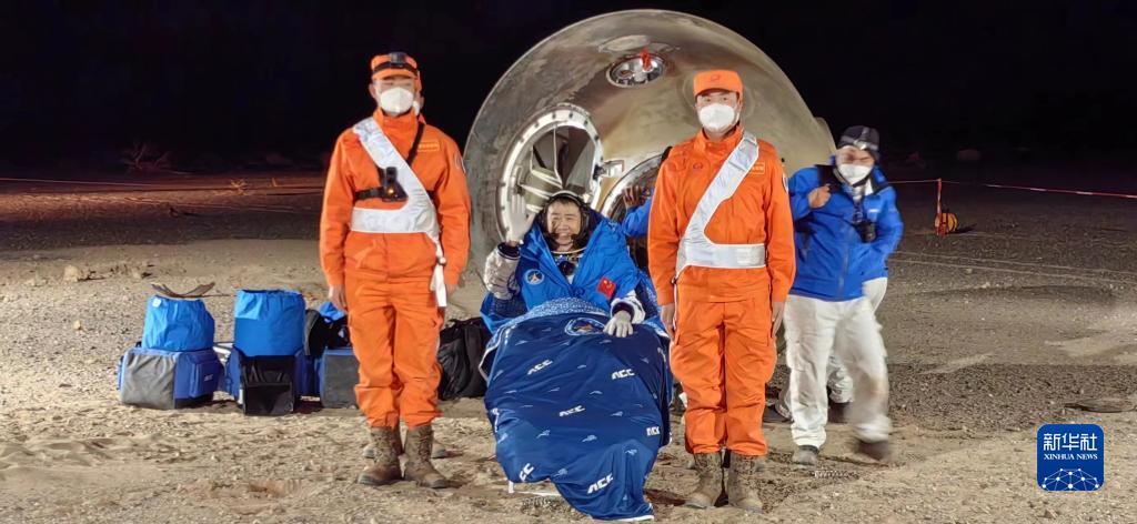 12月4日,神舟十四號載人飛船返回艙在東風著陸場成功著陸。這是航天員陳冬安全順利出艙。新華社記者 李剛 攝