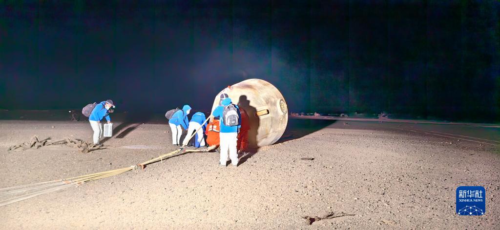 12月4日20時09分,神舟十四號載人飛船返回艙在東風著陸場成功著陸,現場醫監醫保人員確認航天員陳冬、劉洋、蔡旭哲身體狀態良好,神舟十四號載人飛行任務取得圓滿成功。新華社記者 李剛 攝