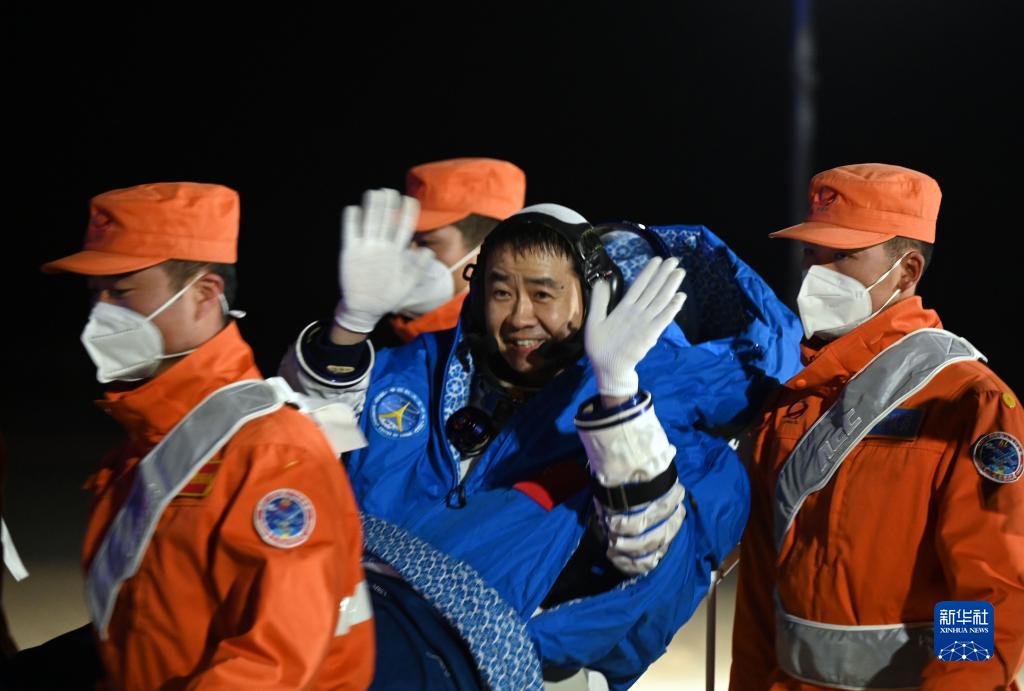 12月4日20時09分,神舟十四號載人飛船返回艙在東風著陸場成功著陸,現場醫監醫保人員確認航天員陳冬、劉洋、蔡旭哲身體狀態良好,神舟十四號載人飛行任務取得圓滿成功。這是航天員陳冬安全順利出艙。新華社記者 連振 攝