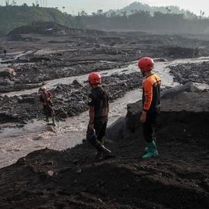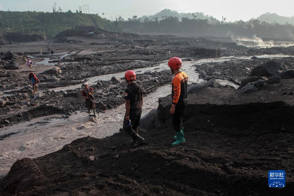 12月5日,在印度尼西亞東爪哇省盧馬姜縣薩皮圖朗村,救援人員協(xié)助村民撤離。