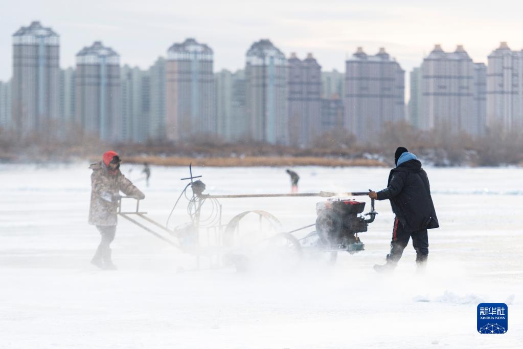 目前,“冰城”哈爾濱市已進(jìn)入“采冰季”。工人從封凍的松花江采冰,并將冰塊運(yùn)往哈爾濱市的重要景點(diǎn)等地,用于冰雪景觀的搭建制作。