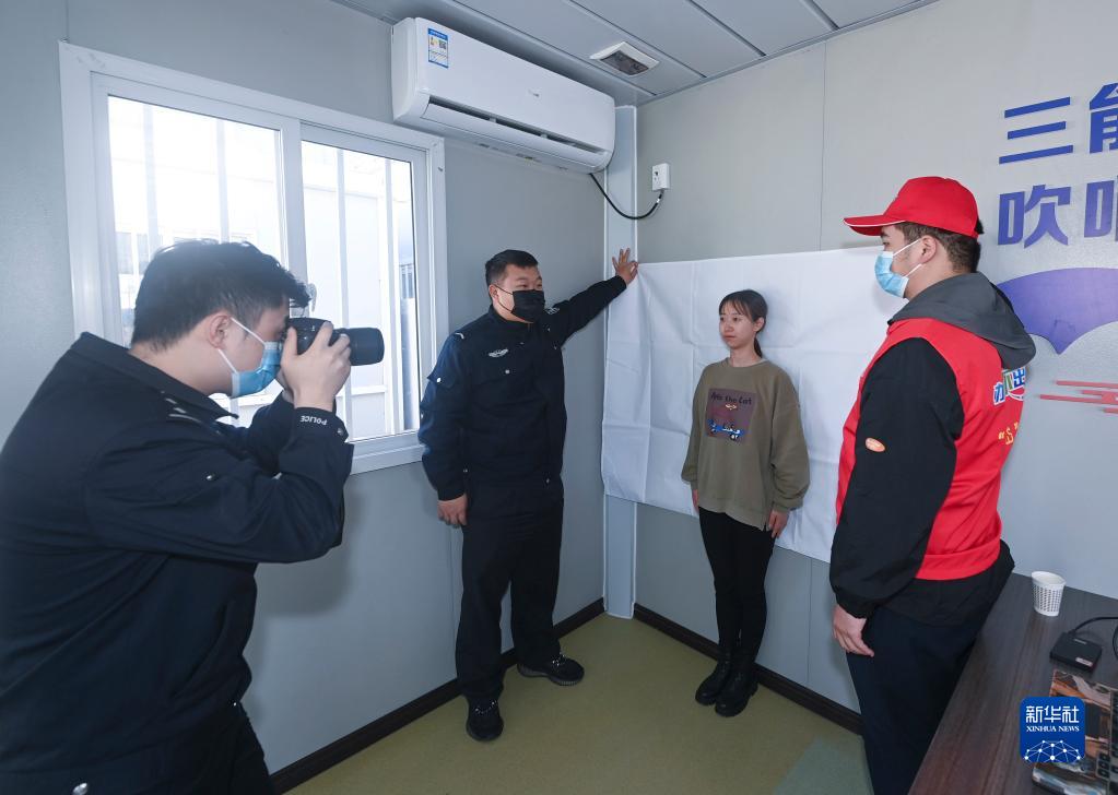12月7日,岱山縣公安局羅家岙派出所民警在鼠浪湖島為丟失身份證的外來務工人員拍攝證件照片、辦理身份證。