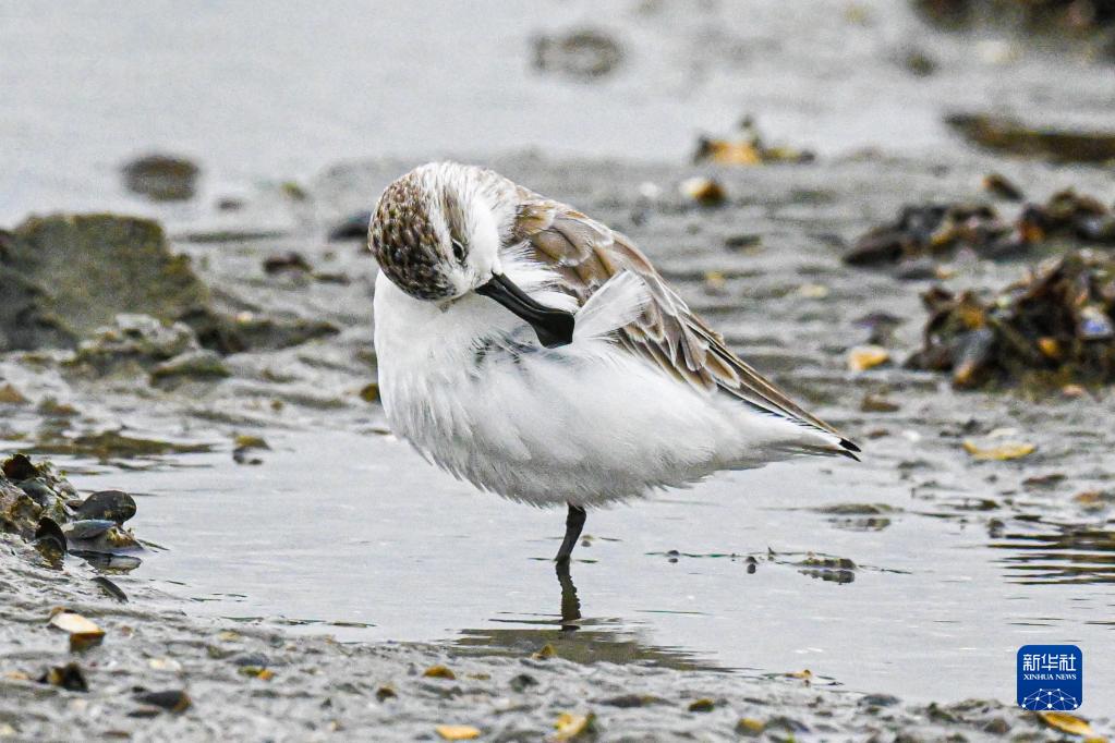 12月5日在海南省儋州市一處濕地拍攝的勺嘴鷸。