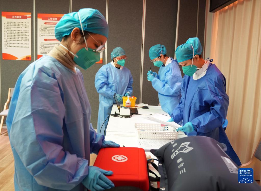 12月9日,接種小分隊的醫護人員在大同居委會為接種疫苗做準備。