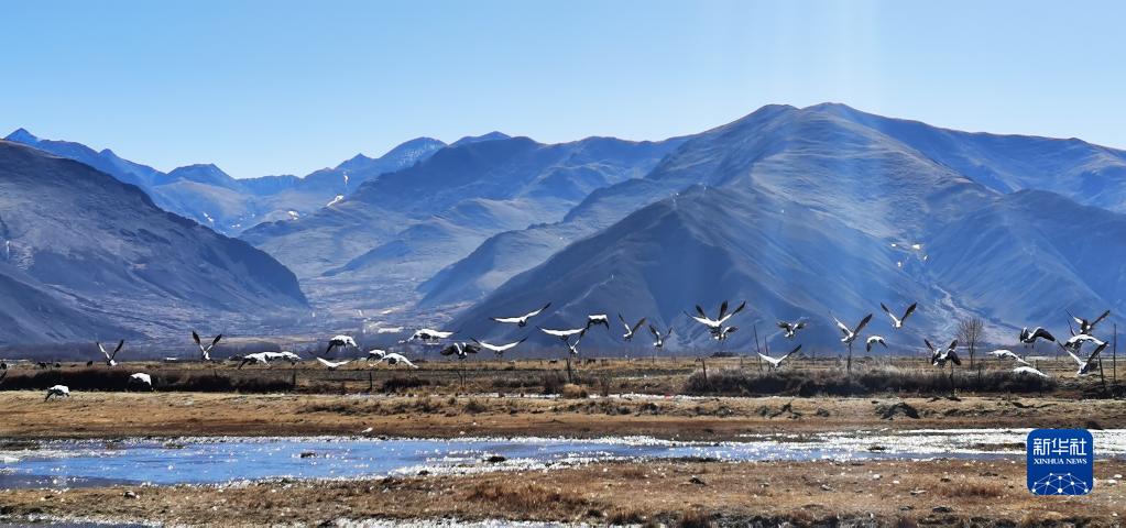 唐嘎鄉位于拉薩市達孜區東北部,這里每年冬季都會迎來黑頸鶴、斑頭雁、赤麻鴨等候鳥。這些珍稀鳥類時而在空中盤旋,時而棲息在水邊,營造出一幅生機盎然的冬季畫卷。