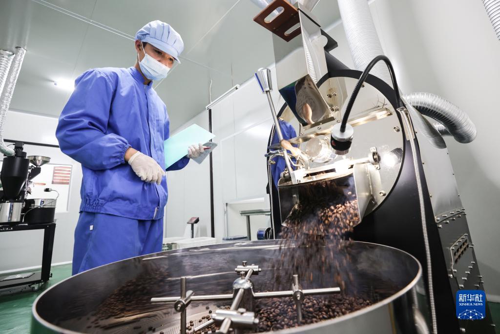 12月10日,在位于海南澄邁的才存咖啡廠,返鄉大學生 、該廠副總經理徐寶在烘焙咖啡。