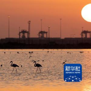 這是12月12日在埃及塞得港省福阿德港自然保護區拍攝的火烈鳥。